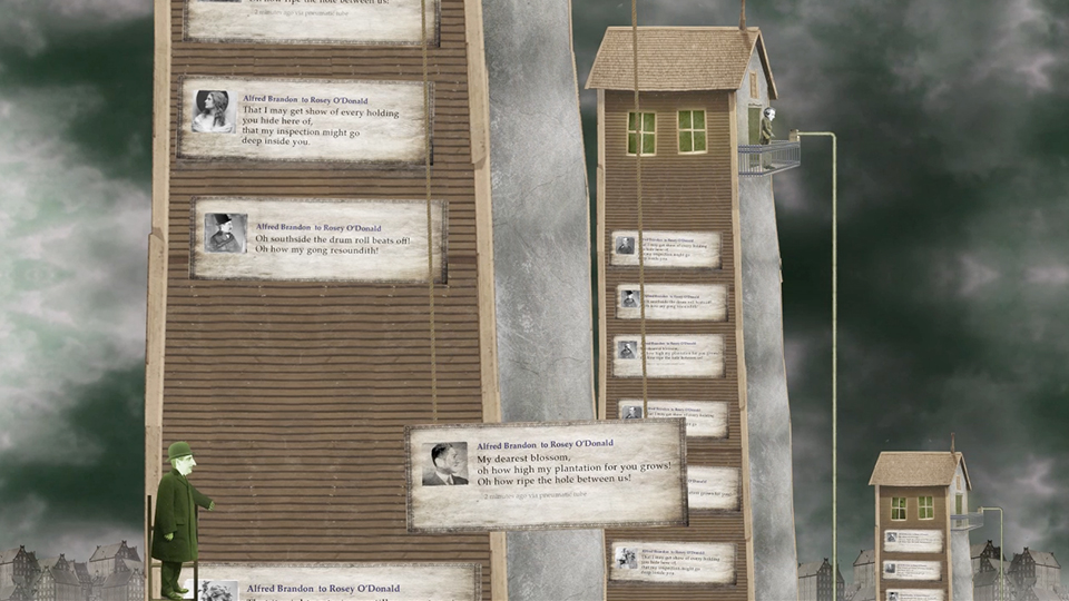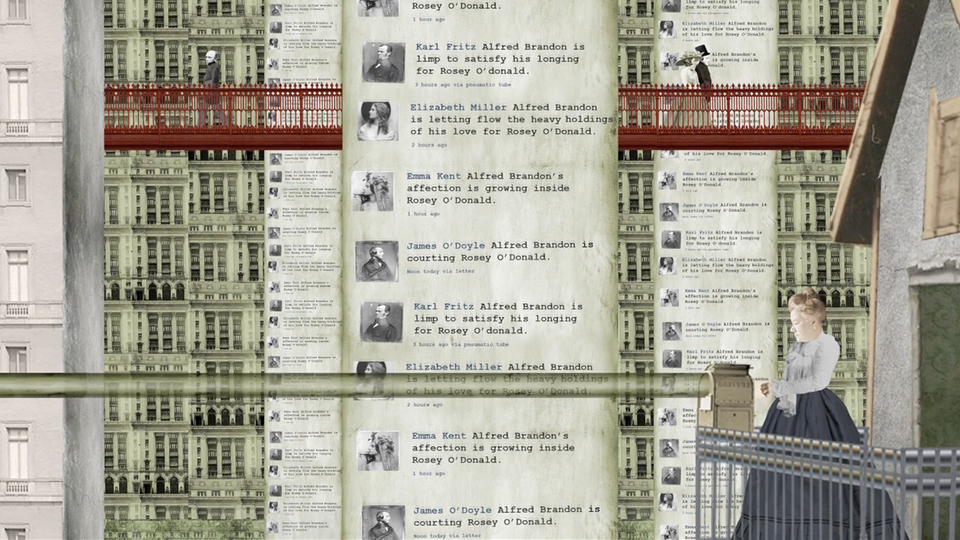 I have reconceptualised the internet in the early 20th century to help the audience reconsider assumptions about the appropriateness of social networking. This piece forms the first of what I hope will be a series of works exploring different ways the internet affects our actions as human beings.